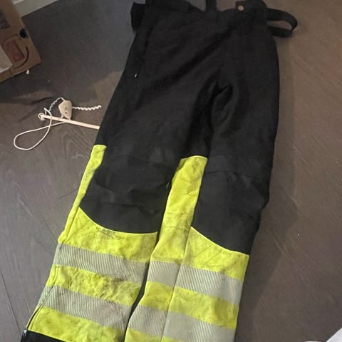 Miesten käytetty tekniset kylmän kelin housut, joissa lämmin fleece sisus. Materiaali on lämmin, pitää tuulen eikä päästä sadetta läpi. Eivät ihan kaatosadetta, mutta melkein.