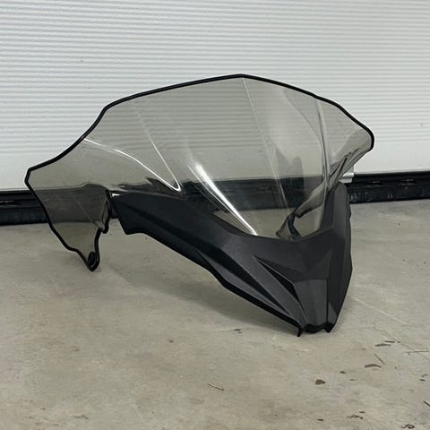 Korkea tuulilasi sekä myös sivupalat ja reunalista