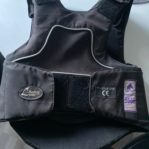 Hyväkuntoinen turvaliivi, jonka kokoa voi säätää nyöreillä sivusta. Koko aikuisten xs mutta hankittu lapselle (jonka ratsastusmotivaatio loppui yhtä nopeasti kuin alkoi).