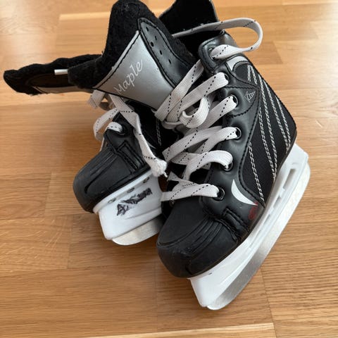 Cantop jääkiekkoluistimet lapsille, koko 31. Väri musta-valkoinen punaisilla yksityiskohdilla. Luistimissa on nauhakiinnitys.