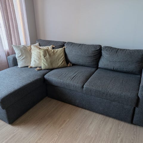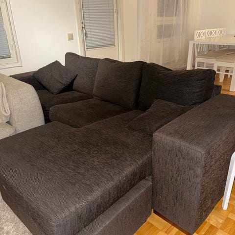 Harmaa kolmen istuttava divaanisohva myynnissä muuton takia. Sohvan kunto on hyvä. Divaani on erillinen osa.
