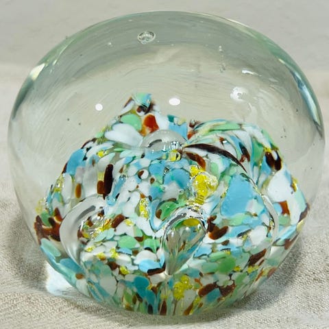 Monivärinen paperipaino, arviolta 40-50 luvulta. Kunto erinomainen. Nouto käteisellä Moisiosta, katso myös muut kohteeni.