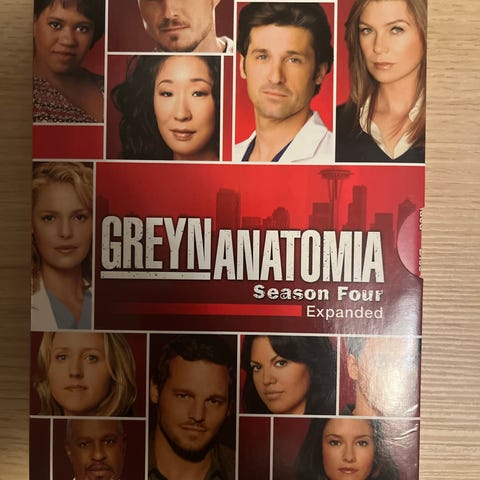 Grey’s Anatomy Season Three DVD-boksi. Kolmannen tuotantokauden kokoelma, jossa useita jaksoja sekä lisämateriaalia, kuten poistettuja kohtauksia ja muuta bonusmateriaalia. Formaatti DVD, ikäraja 11. Sopii DVD-soittimille, jotka tukevat aluekoodia 2 ja PAL-järjestelmää. Levyllä 2 naarmuja, huomioitu hinnassa.