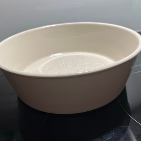 Kermansavi,tarjoiluastia kannella. Astia on vaaleaa keramiikkaa ja siinä on sisäpuolella sininen kuvio. Sopii esimerkiksi ruoan tarjoiluun pöydässä. Kannellinen malli auttaa pitämään sisällön lämpimänä ja suojaamassa sitä pöydällä tai säilytyksessä.