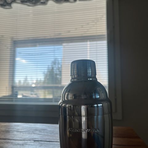 Lasinen shaker klassikkodrinkkien resepteillä.