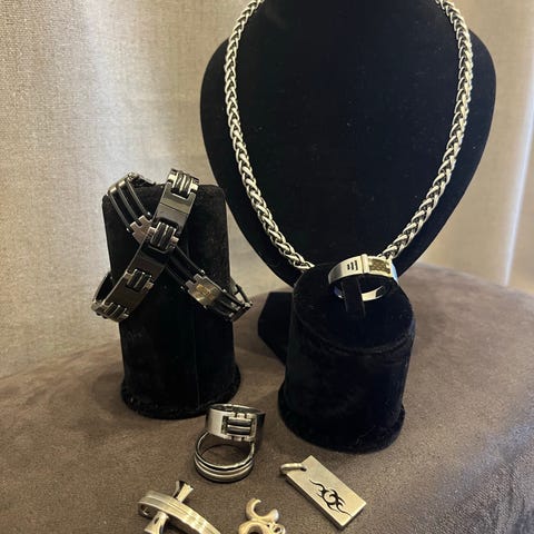 Ruostumatonta terästä jossa kestävä kultaus. Kaulaketjun pituus 45 cm ja säädettävä rannekoru. Sopii lahjaksi. Mukaan saa lahjalaatikon.