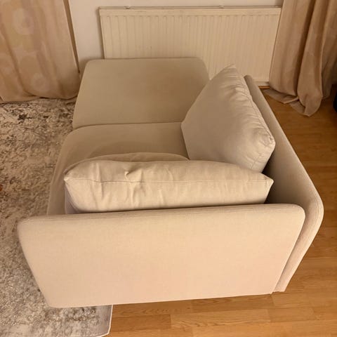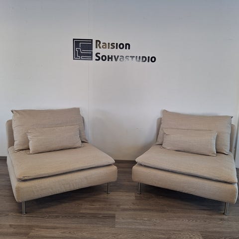 Myynnissä erittäin suuren suosion saavuttanut Ikean Söderhamn sarjan 1:n istuttava osa ja kulmapala. Ikeassa kyseinen sohva myydään nimellä 3:n istuttava sohva pääty auki. Sohvassa 1:n istuttavan ja kulmapalan puolta voi vaihtaa. Päällisten väri: Finnsta valkoinen. Kyseinen väri poistunut Ikean valikoimista. Kyseisen värisellä päällisillä näin siistikuntoista todella harvoin tarjolla. Ryhmän kaikki päälliset ovat irroitettavissa pesuun. Runkojen päälliset mukaan lukien. Lisäksi päälliset ovat halutessaan vaihdettavissa. Sohvan hinta: 439€.