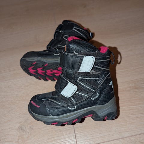 Siistikuntoiset ja lämpimät gulliverin kengät kokoa 24. Edessä leveällä tarralla kiristys.