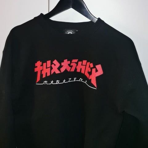 Thrasher pipo, väri musta. Materiaali puuvilla. Koko one size, sopii useimmille aikuisille. Edessä brodeerattu Thrasher Magazine -logo. Soveltuu arkikäyttöön ja ulkoiluun viileämmillä säillä.