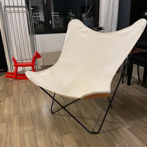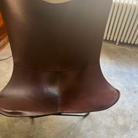 Myydään muuton yhteydessä CUERO DESIGN Mariposa-lepakkotuoli Pampa-nahka Montana/musta.