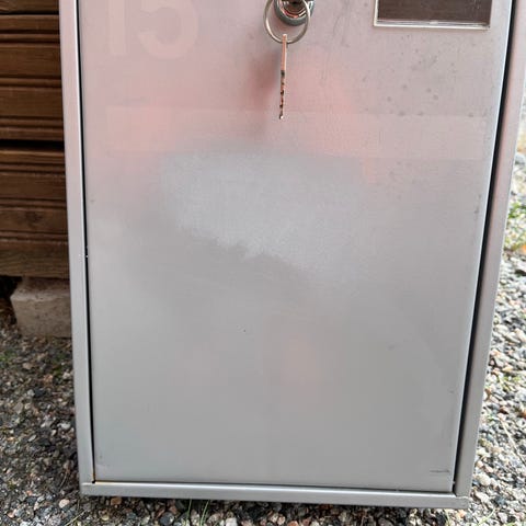 Ruostumaton lukollinen postilastikko. Stala. Yksi avain, perus-Abloy.