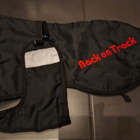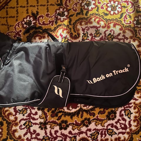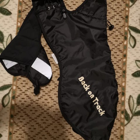 Uusi, vain sovitettu talvitakki. Hyvä pitkä malli, joka suojaa myös hännän! Edessä hyvät säädöt. Säädettävät jalkalenkit ja erittäin hyvät heijastimet! (Meillä sama takki käytössä eri koossa).