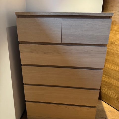 Malm lipasto 4 laatikkoa vaaleaksi petsattu tammiviilu