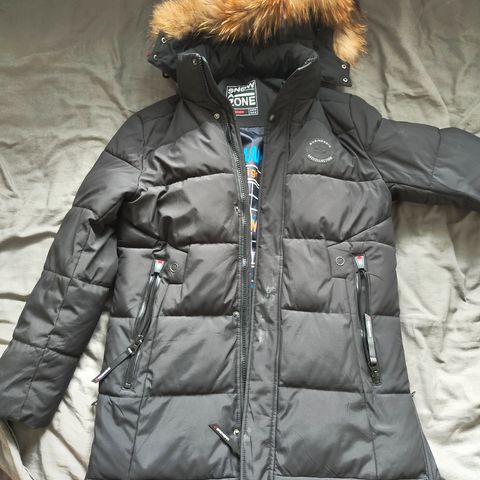 Icepeak miesten pitkä talvitakki. Muutoin tahraton ja virheetön, mutta vetoketjun alkupäästä lähtenyt muutama hammas (näkyy kuvassa). Tästä huolimatta toisen lukon avulla vetoketju ei kuitenkaan lähde avautumaan, eikä ketjun vetämisen kanssa ole ikinä tarvinnut taistella.