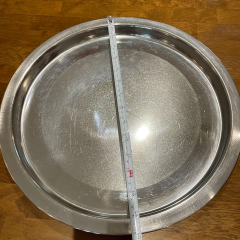 Metallitarjottimet; kulmikas, irroitettava kahva 21x21 cm ja pyöreä 26 cm.