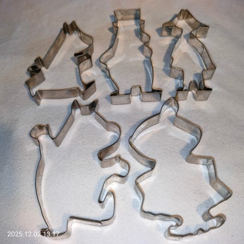 6 kpl hyväkuntoisia Muumi-aiheisia piparkakkumuotteja yhteishintaan 3e.