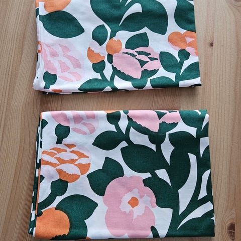 2kpl Marimekko tyynynpäällisiä. Kuosin nimi muistaakseni Onnea etsimässä. Marimekko-merkki ommeltu sivusaumaan. Ostettu täältä, mutta jäikin itseltä käyttämättä, joten nyt etsivät uutta hyvää kotia! Yhteensä 25€.