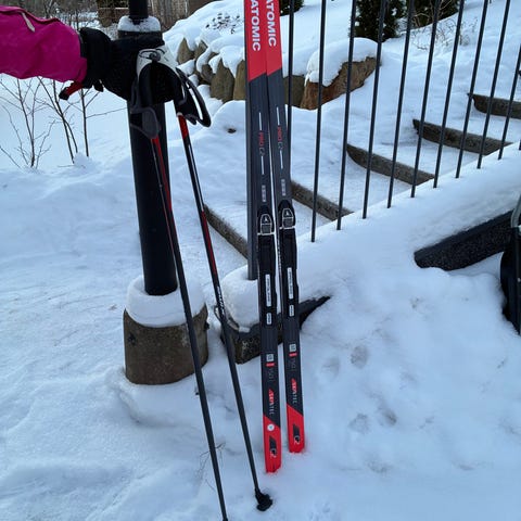 Atomic Skintec C2 Prolink -perinteisen sukset, pituus 140 cm. Suksissa on karvapohja (skintec) ja Atomic Prolink -siteet. Väri punainen/musta.