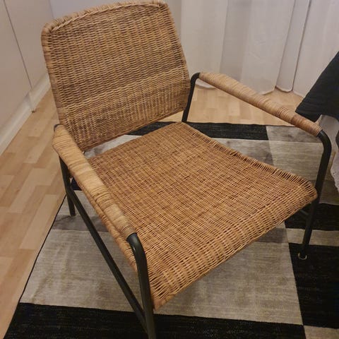 IKEA nojatuoli harmaa kangas istuinosa puurunko