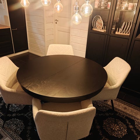Myydän hyväkuntoinen, valkoinen Pohjanmaan kalusteen ruokapöytä. Ostettu uutena maskusta (ovh. 529e). Kansi ehjä.