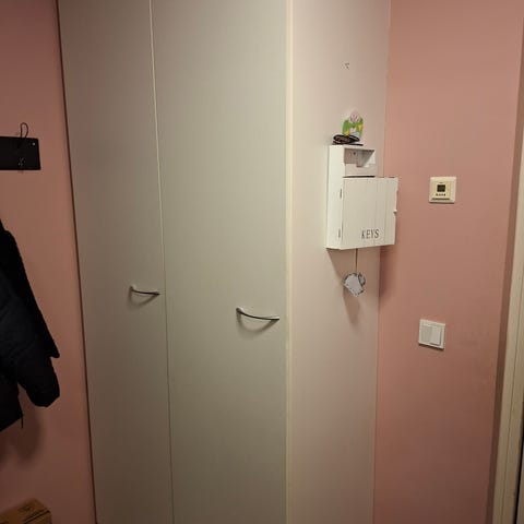 Ylimääräiseksi jäänyt kaapisto kuin uutta vastaava. Kaapit purettuna ja kaikki osat tallessa. Hintaan sisältyy yksi pienempi kaappi, L=40cm, K=220cm, S=30cm.