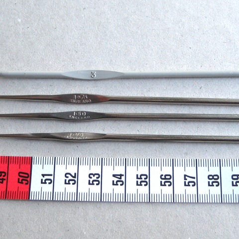 9 virkkuukoukkua. Hyvässä kunnossa.