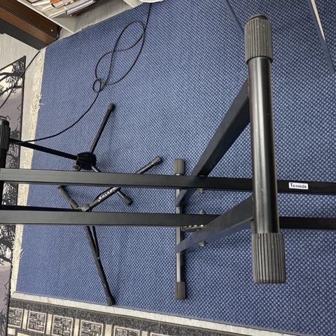 Myydään käytetty hyväkuntoinen teline kosketinsoittimelle.