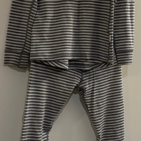 Myydään merinovillakerrasto (merinovilla 70 %, polyamidi 30%). Koko 140, mutta pientä kokoa, lisäkuvissa mitat lahkeen ja hihan pituudesta.