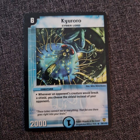 Duel Masters keräilykortit, yhteensä 5 kappaletta. Korteissa näkyvät muun muassa hahmot Ulex the Dauntless, Torito Pipicchi, Barkwhip the Smasher ja Arc Bine the Astounding.