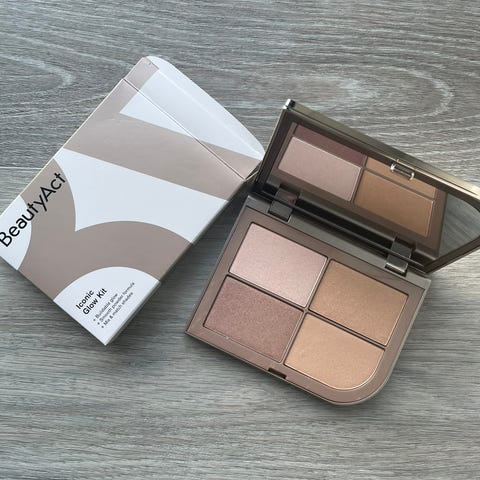 BeautyAct Radiant Glow Kit korostuspaletti sisältää neljä puuterimaista korostussävyä neutraaleissa, lämpimän beigen ja kullan sävyissä. Paletti on tarkoitettu kasvojen korostamiseen ja heleyttämiseen. Sopii käytettäväksi poskipäille, kulmaluulle, nenänvarteen ja muille kasvojen korkeille kohdille. Soveltuu meikin viimeistelyyn ja valon tuomiseen kasvoille. ovh 33€