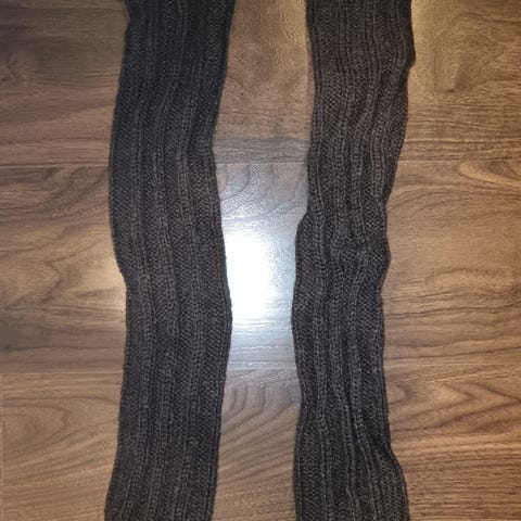 Käsintehdyt villaiset säärystimet. Materiaalina villasekoitelanka. Mahtuvat hyvin housujen päällekin 38 cm:n ympärysmitan pohkeeseen. Pituus 40 cm.