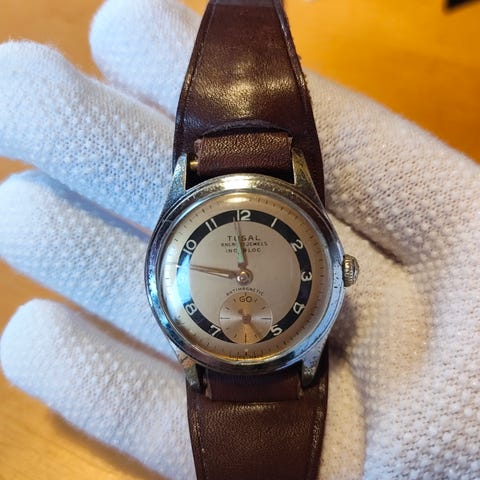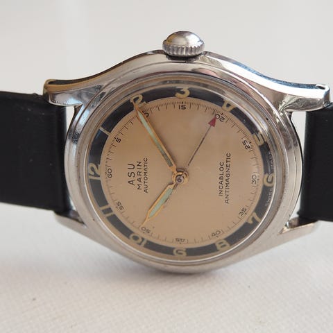 Toimiva vintage Oska Prima vedettävä ajanottokello erikoisella asteikolla, toimii ja nollaa keskelle . Huolloista ei tietoa, leveys 57mm. Nouto Lohjalta tai postit ostajalle.