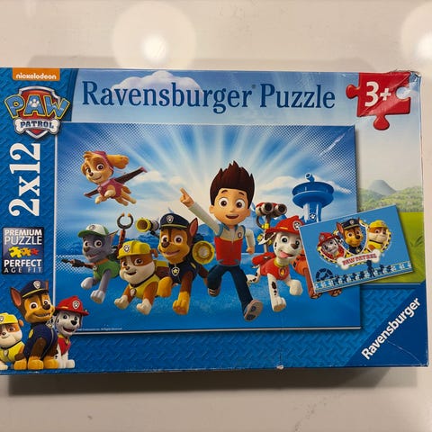 Ravensburger Paw Patrol palapeli 2 x 24 palaa. Pakkauksessa on kaksi erillistä palapeliä, joissa on yhteensä 48 palaa. Monesti koottu mutta yhä kohtuullisessa kunnossa.