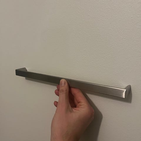 Keittiö kaapin vedin. 3kpl. Reikienväli 26cm ja kokonaismitta 34cm.