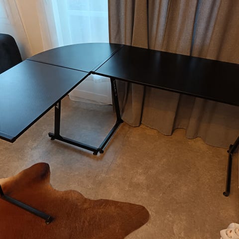 Pöydässä 3 valmista reikää josta saa johdot tms läpi. Alapuolella myös paikka mihin saa näppärästi langat piiloon.