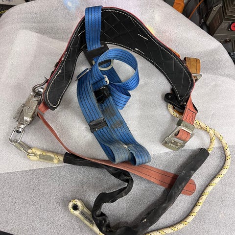 Kiipeily-ikäiselle toppakengät ja vyö. Itselläni käytössä olleet ja nyt viimeiset 5 vuotta kuivassa varastossa. Kengissä kevyttä pintaruostetta, mutta niin on ollut viimeiset 30 vuotta. Suomalaista terästä ja kengät ovat edelleen hyvät. Edelleen kenkien remmit toimii hyvin. Aikoinaan kiipelin enemmän, kuten kuvista näkyy. Edelleen toimiva setti ammatti osineen, mutta ei nyt enää työ/ammattikäyttöön.
