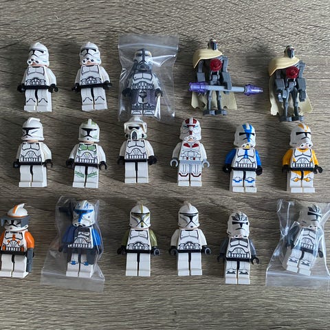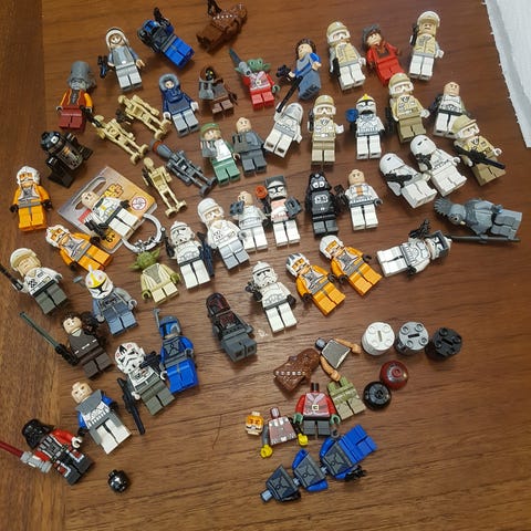 Lajitelma sekalaisia Lego Star Wars ukkoja.