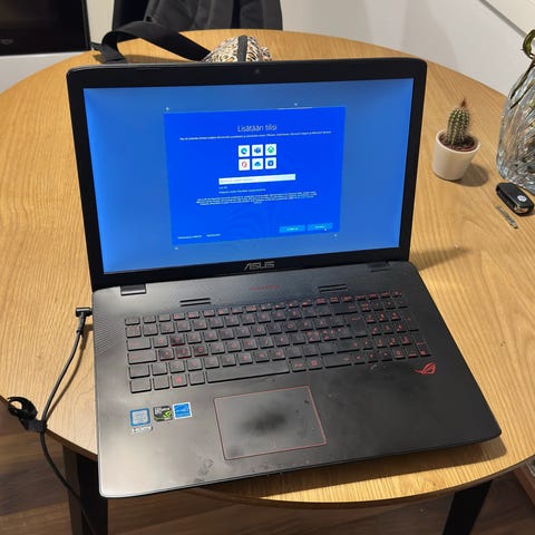 Myydään täältä käytettynä ostettu kuvien mukainen pelikannettava. Käytönjälkiä löytyy edellisen omistajan jäljiltä, mutta ei ole haitannut käyttöä, katso kuvat. Jostain näppäimistä merkit hieman kulunut. Mitään moitittavaa ei ole, pyörittänyt pelejä hyvin, eikä ole ongelmia ollut. Muistia on 477GB, Ramia löytyy 8,00GB ja graphics card 4GB. Mukaan saa myös laturin ja hiiren. Hinta 180 euroa posteineen tai nouto Heinävedeltä, ja voin myydä 150 eurolla.
