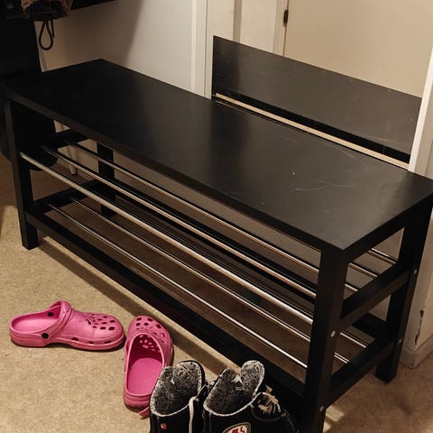 Hakusanat: eteinen, kengät, säilytys, sisustus, moderni, musta, valkoinen, teline, huonekalu, kenkäteline