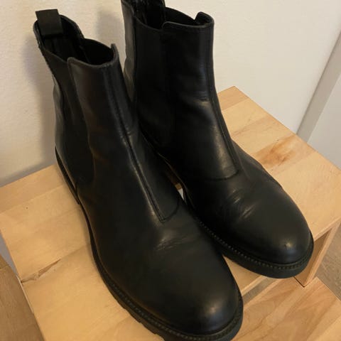 Laadukasta nahkaa ulkoa ja sisältä. Siistissä, vähän käytetyssä kunnossa. Tukevat ja erittäin miellyttävät jalassa, chelsea boot-malli.