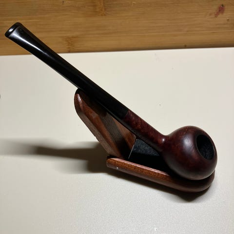 Kaupan Italialaisen Stephan Santambrogio artisan piippuvalmistajan lyhyt Lovat mallinen piippu Italiasta. Kevyt ja käytännöllinen tilavalla pesällä varustettu piippu jonka varsi on valmistettu käsin viimestellystä akryylistä. ilman filtteriä.Pesän syvyys 37mm palotilanaukon halkaisija 19mm pituus: 11. 8 cm paino 30 gr Kokoluokka :L Vaaleaa laadukasta calabrian briaaripuuta.Tämä piippu on virheetön ja lähellä uudenveroista kuntoa.Siisti sisältä ja päältä.Valmis käyttöön tai keräilyyn.Kiitos mielenkiinnosta