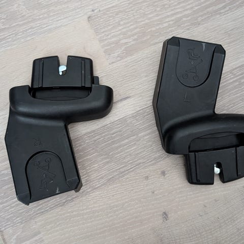 Adapterit jolla saa turvakaukalon kiinni rattaisiin/vaunuihin. Näitä 2paria myynnissä.