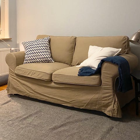 Myydään pois uusien tieltä. Ikean Ektorp sohva ja nojatuoli. Toinen päällinen Hakebo tummanharmaa ja toinen vanhempaa mallia joka ei enää myynnissä(paksumpaa kangasta, myös harmaa). Toinen päällinen kolmannessa kuvassa esillä. Molemmat päälliset ovat kone pestäviä.