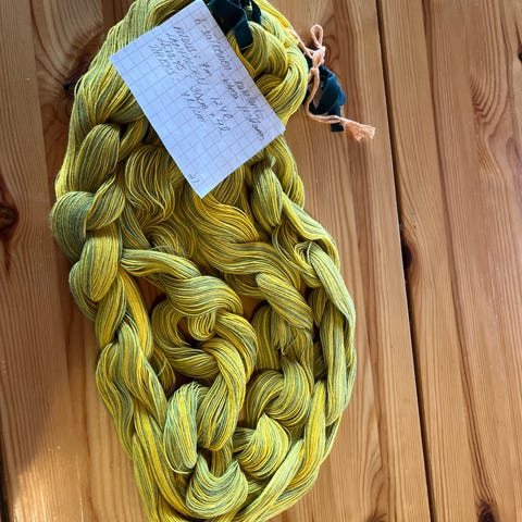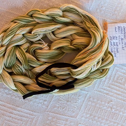 Myynnissä kotimaisesta 6-säikeisestä kalalangasta tehty loimi kangaspuukudontaan. Loimi on luotu kahdelta päältä: