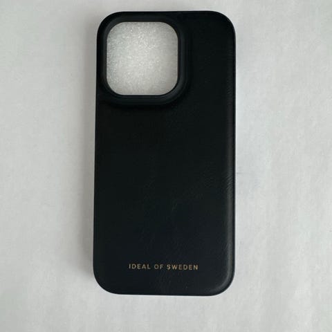 iDeal of Sweden Iphone 14 Pro. Kovamuovinen suojakuori, jossa vaalea marmorikuviointi ja kiiltävä pinta. Kuori suojaa puhelimen taustaa ja reunoja naarmuilta ja kolhuilta ja jättää liitännät ja painikkeet käytettäviksi.