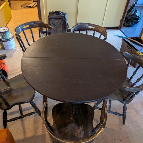 Askon Bonanza ruokailuryhmä, pöytä ja 3 tuolia. 4 tuolin saa kaupan päälle, se tarvitsee vain liimaa. Saranallinen jatkopala löytyy myös, joten pöydästä saa suuremman. Ikäisekseen oikein hyvässä kunnossa, onhan tällä ikää jo puoli vuosisataa.