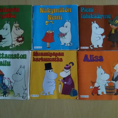 - Pixi 41: Muumipeikko ja delfiini. (yhdellä sivulla sotkua, muttaei haittaa lukemista)