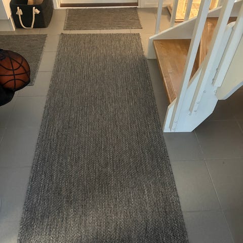 Myydään harmaa käytävämatto liukuestepohjalla.