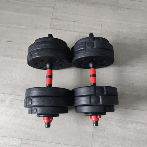 Kuvan käsipainosarja. Painot painaa niiku kuuluukin.