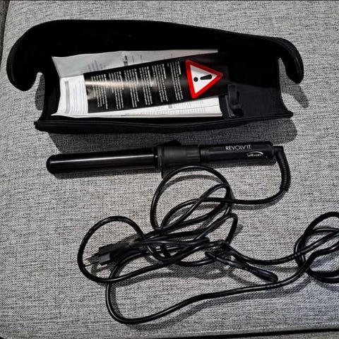 Ultron Revolv'it kampaamotason kiharrin hiusten muotoiluun. Väriltään musta laite, jossa on 2cm hakaisijaltaan oleva keraamisesti pinnoitettu kiharrinosa ja 3m pitkä virtajohto. Sekä kiharrinosa että johto pyörivät 360 astetta.